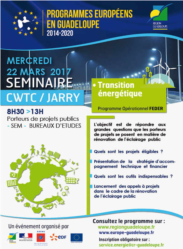 Le conseil régional a organisé mercredi 22 mars 2017, de 8h30 à 13h au CWTC un séminaire de présentation des aides FEDER pour l’éclairage public.