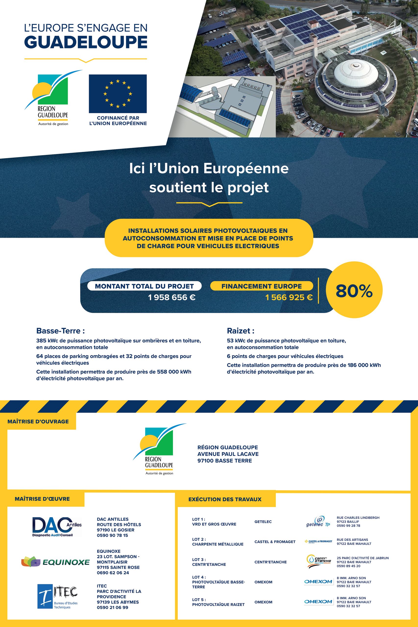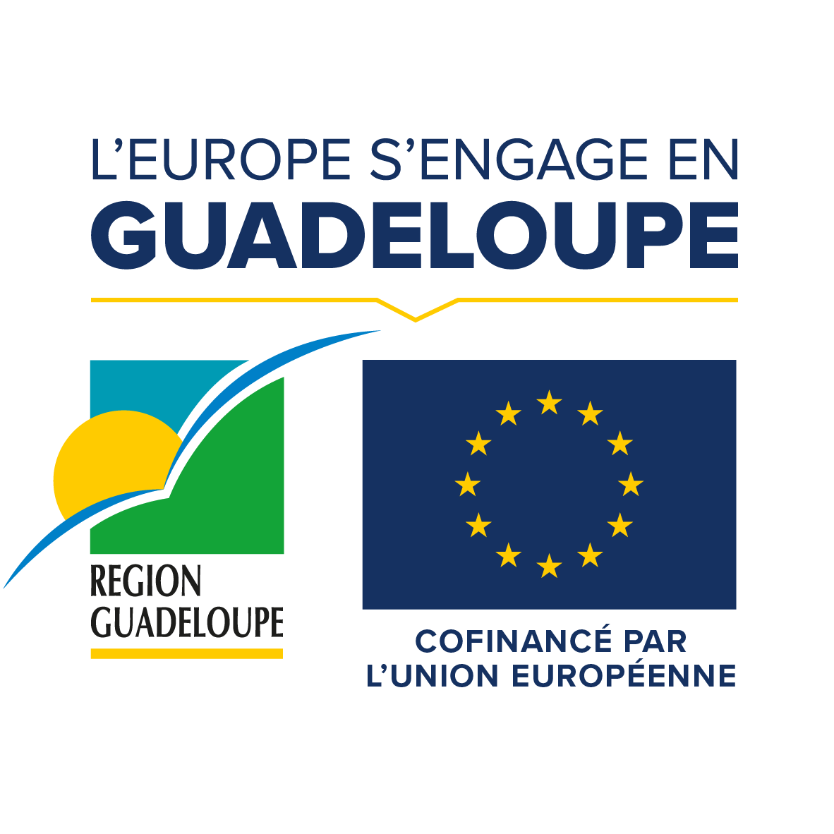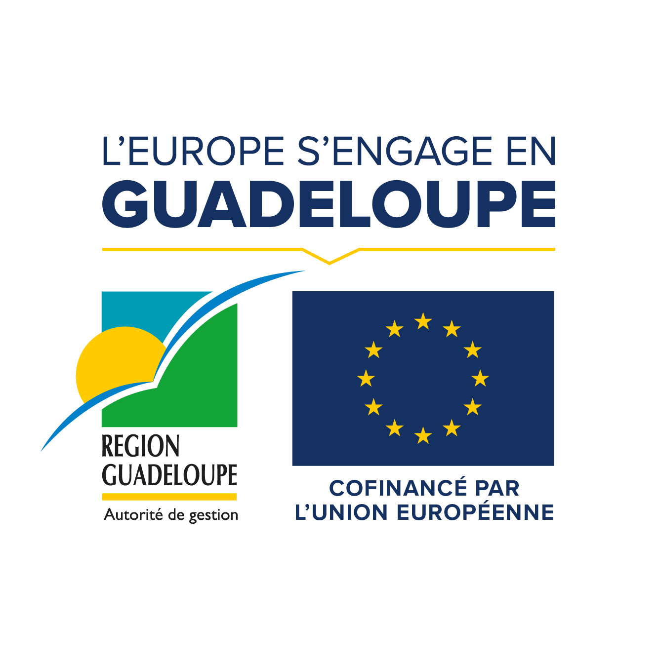 Région Guadeloupe, autorité de gestion des fonds européens et des mentions « cofinancé par l’union européenne » et « l’Europe s’engage en Guadeloupe » :